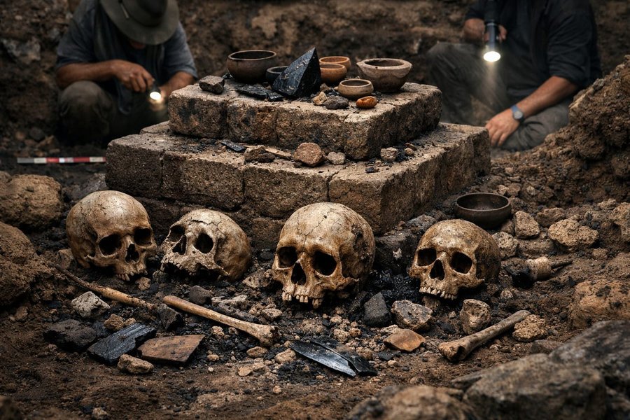 Hallan un altar de 1.000 años rodeado de cráneos humanos y el descubrimiento impacta a arqueólogos